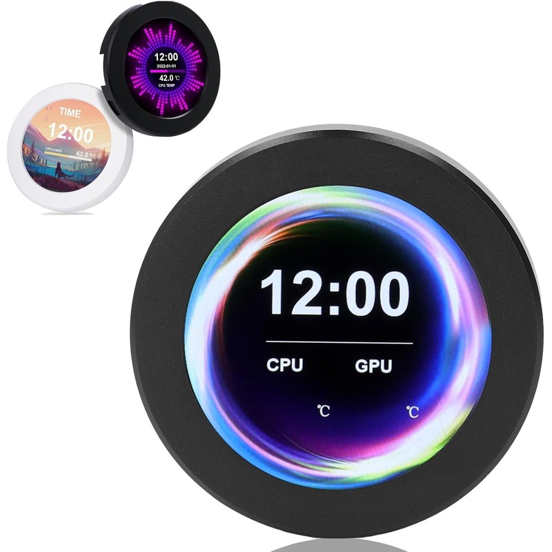 Liquid Cooler LCD Screen,2.1“ IPS Real Time Temperature Control Round CPU Liquid Cooler Display,Dimmable Rotatable AIO Display Screen with Super Bright Backlight for PC
