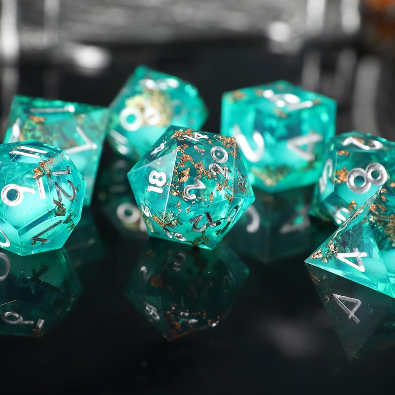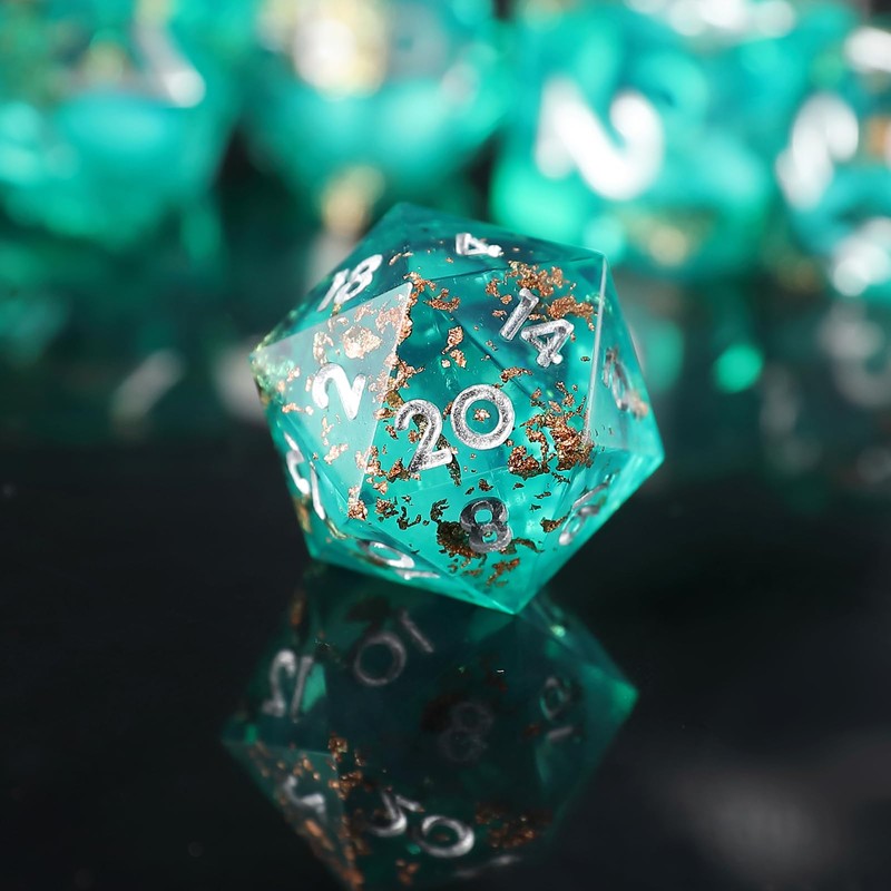 - High Quality Material: The liquid core dnd dice set are hand-cast with natural resin, environmentally friendly, non-toxic, sturdy and wear-resistant, with moderate weight and good rolling feel.