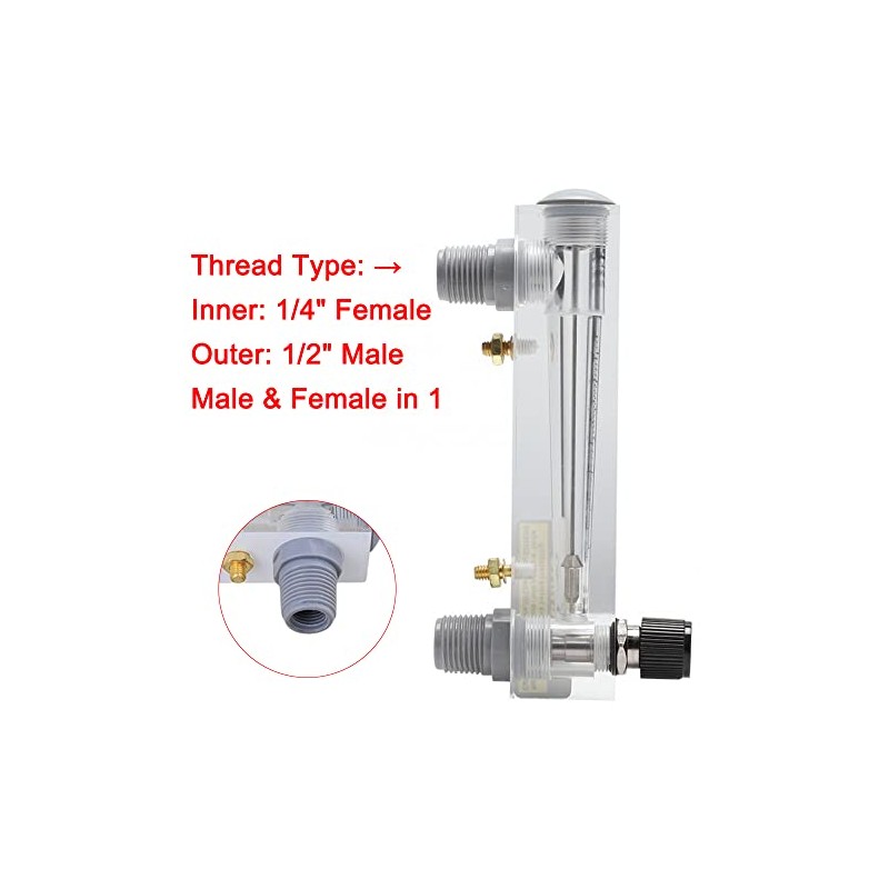 - High Quality Material The flow meter is made of selected organic acrylic glass shell, ABS plastic interface. Try to use the best flow meter. (Normally 40%-70% of maximum flow) Package Content:1 x Flow Meter
