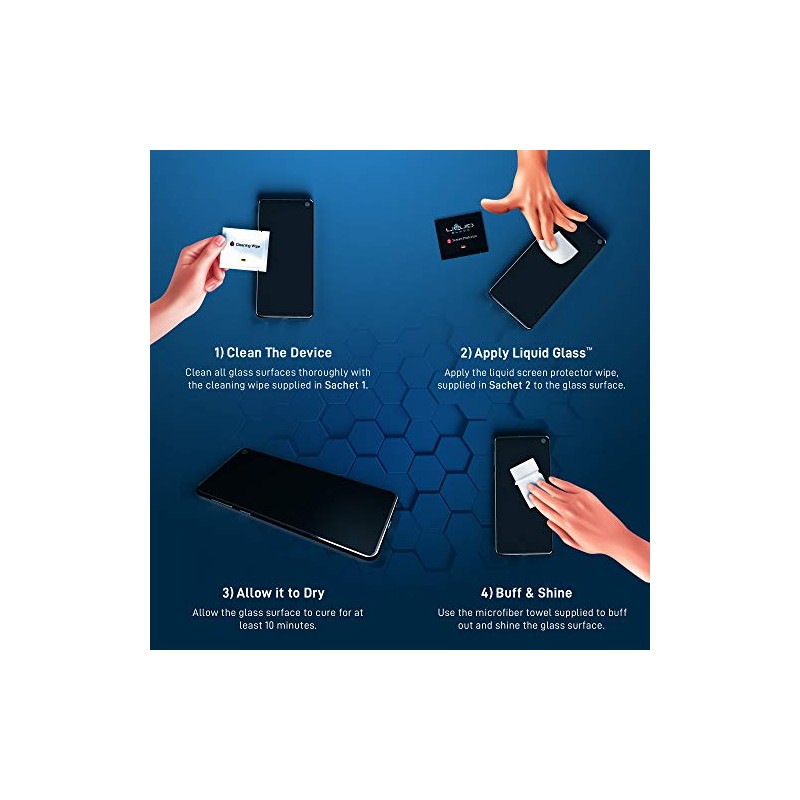 • Liquid Glass by ProofTech is an advanced technology, invisible, wipe-on screen protector that bonds to the glass of your device offering enhanced scratch, moisture, and impact resistance.
