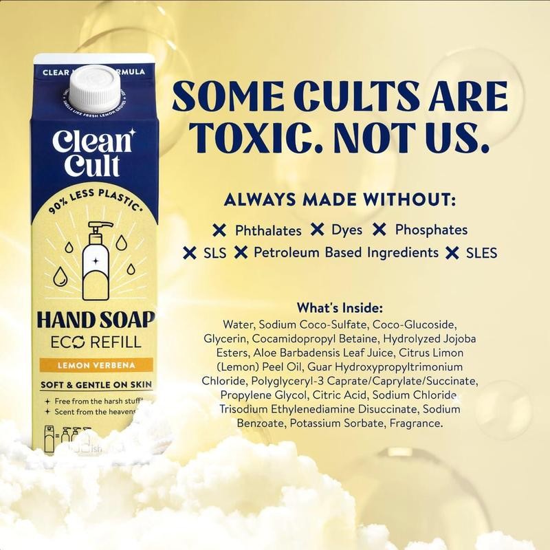 • A Cleaner Kind Of Cult: Choose our liquid hand-wash soaps for a cleaner approach to hygiene. Our formula gently cleans and promotes healthier, fresher hands and is free of phthalates, phosphates, SLES, SLS, dyes, and parabens. Delight in nature's goodness with every wash.