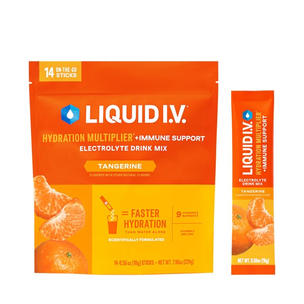 Liquid I.V.® Hydration Multiplier +Immune Support - Tangerine | Electrolyte Powder Drink Mix | 1 Pack (14 Servings)