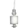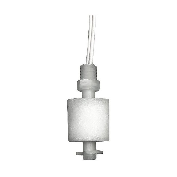 Alternator Closed Liquid Level Switch, Switch Function Close On Rise, Vertical Open Tank Mounting, Tank Connection Size 1/8 in NPT, Max. Pressure 100 psi, VA Rating 30, Operating Temp. Range 221 Degrees F Max, Overall Length 2.25 in, Float Material Polypropylene, Float Length 1 in, Float Dia. 1.0 in, Stem Material Polypropylene, Stem Length 1.63 in, Height 2.25 in, Width 1 in, Contact Form SPST, Max. Current 0.28 A, Max. Voltage 240 V, Body Material Polypropylene, Float Rod Angle Vertical