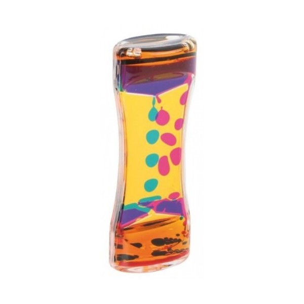 Two bright coloured liquids Blubbern in separate chambers down and create beautiful patterns as it turns.