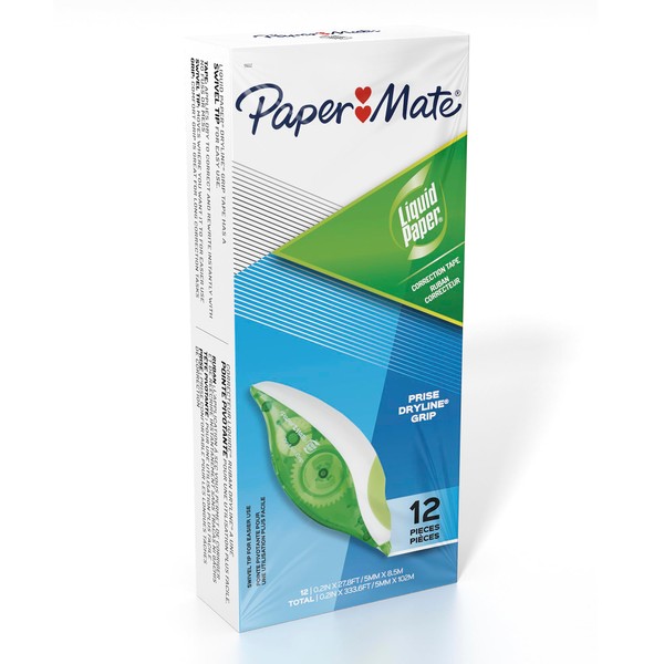 Liquid Paper Correction Tape, DryLine Grip Correction Tape 5mm x 8.5m, Box of 12, White (6612)