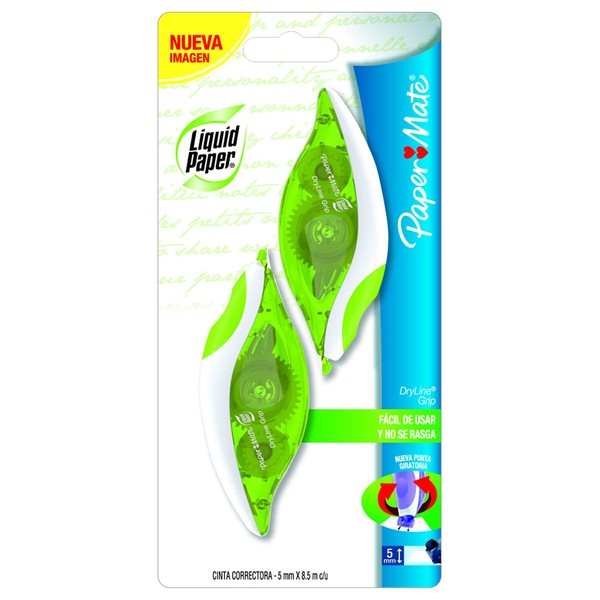 Liquid Paper DryLine Grip Cinta Correctora con Punta Giratoria de 5 mm, Set de 2