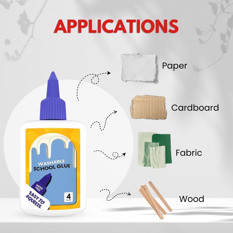 - Washable school glue with 48 glue bottles per pack, ideal for craft glue, classroom glue, and kids' glue projects. This bulk glue is perfect for school supplies, crafting glue, and slime glue activities.