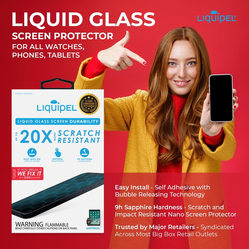 Liquid Screen Protector for all Smartphones and Tablets Liquid Glass 9H Hardness Universal fit with a"You Break It, We Fix It" $150 Protection Plan by Liquipel