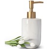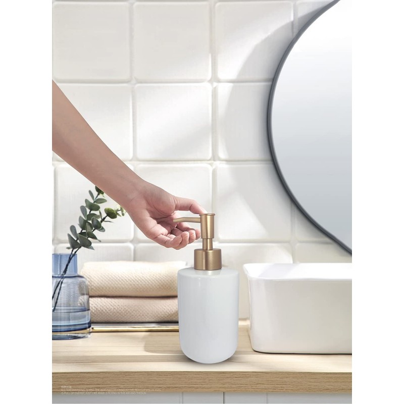 Liquid Soap Dispenser for Bathroom with Gold Pump,Dish Soap Dispenser for Kitchen,Refillable Countertop Lotion Ceramics White Hand Soap Dispenser for Shower 420ml (Cylindrical White Bottle)