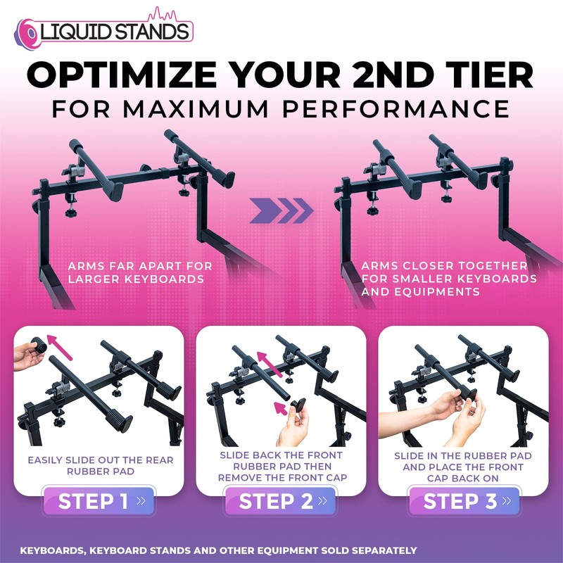 - Universal 2nd Tier: Ideal for any keyboard stand with 1.25" square tubing including all Liquid Stands Models: MS1078, MS1080, MS1084, MS1085. Works great for any 54-88 Key Digital Electric Pianos.