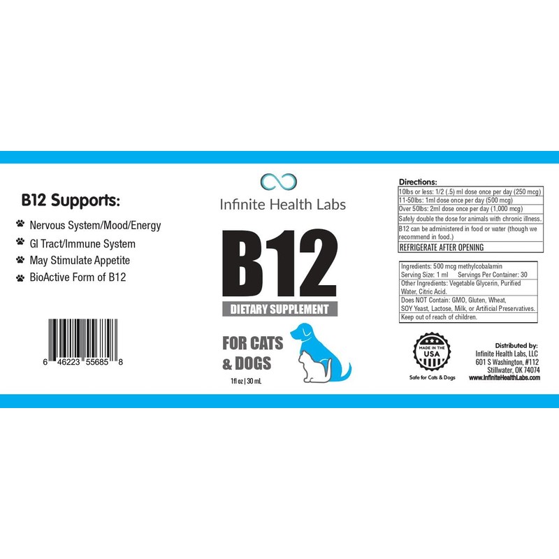 - Vitamin B12 is an essential vitamin that plays an important role in within the body of dogs and cats including the function of the brain and nervous system, cell growth, protein synthesis, metabolism of fat and carbohydrates, and the formation of red blood cells.