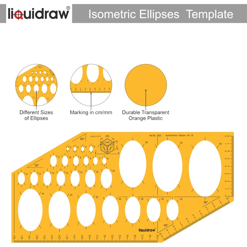 Liquidraw Circle Template Stencil Ellipse Oval Triangle Square Hexagon Geometry Shapes Templates For Drawing Rulers Technical Drafting Stencils Engineering Architecture (27 Ellipses)