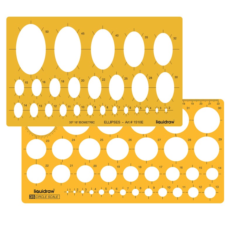 Liquidraw Circle Template Stencil Ellipse Oval Triangle Square Hexagon Geometry Shapes Templates For Drawing Rulers Technical Drafting Stencils Engineering Architecture (Circle & Ellipse Combination)