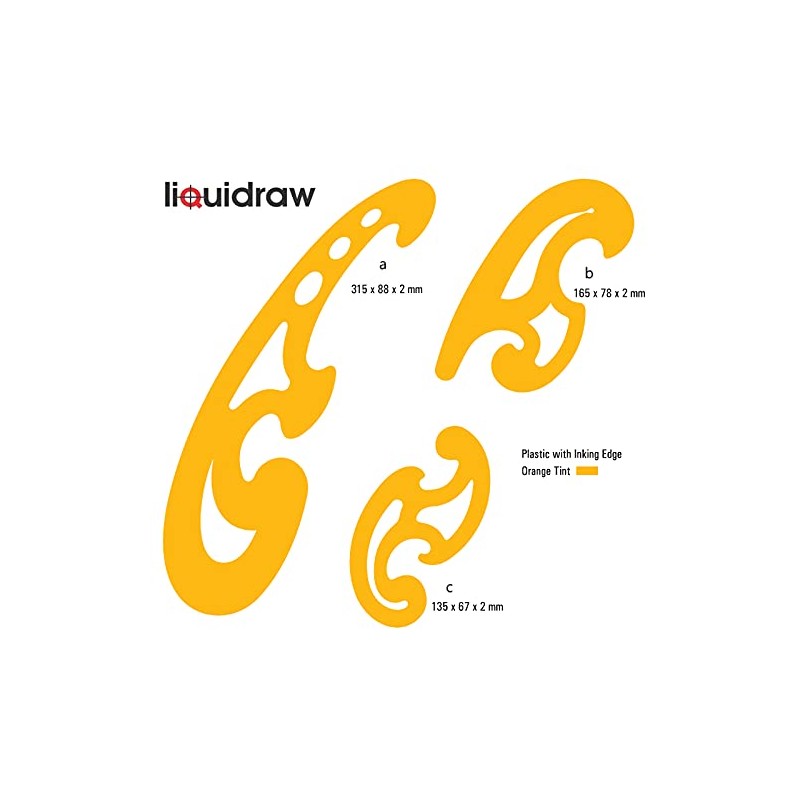 Liquidraw® French Curve Set of 3 Rulers CLEAR/ORANGE Technical Drawing Stencil Templates French Curves (Orange)