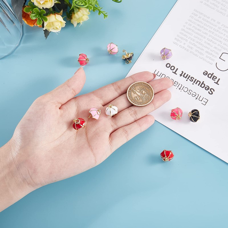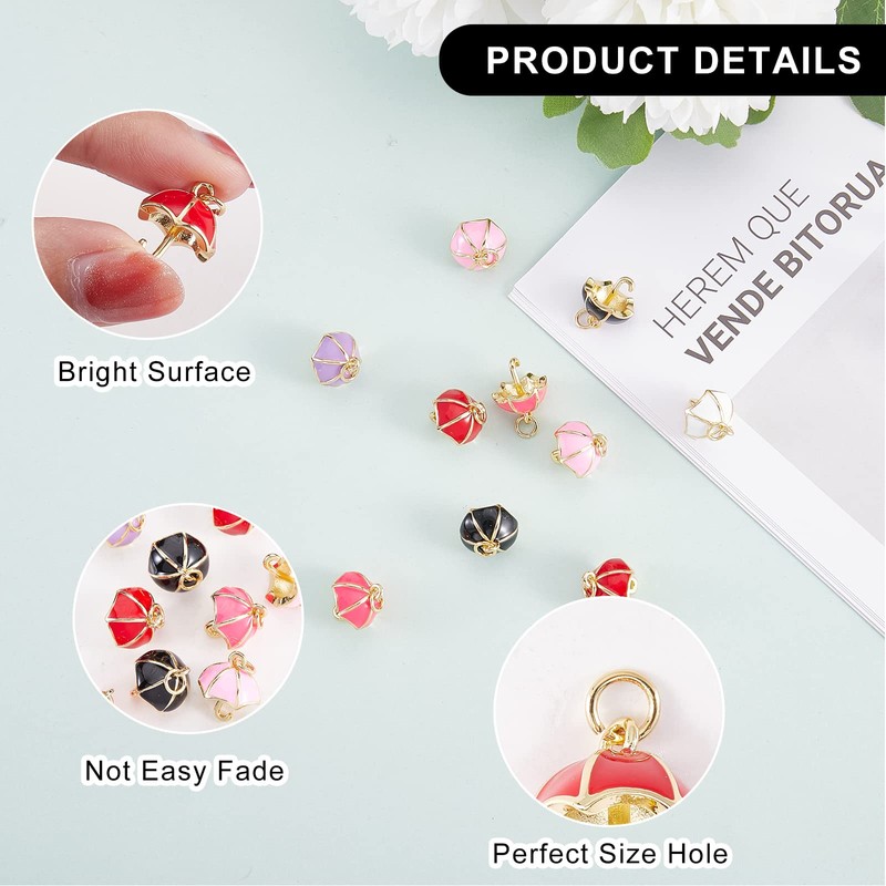 LiQunSweet 10 Pcs Random Colored Tiny Umbrella Charm Golden Plated Metal Brass Enamel Travel Vacation Small Charms for Jewelry Making - 15x13mm