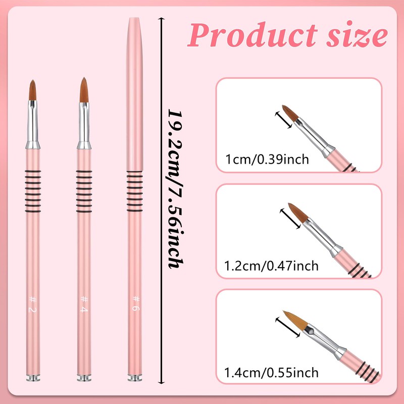 • 【Versatile Sizes】Our set includes three acrylic nail brushes in sizes 2#, 4#, and 6#, catering to all your creative needs. Whether you're crafting intricate designs, delicate flower patterns, or detailed line work, these brushes provide the precision and versatility required for stunning nail art.