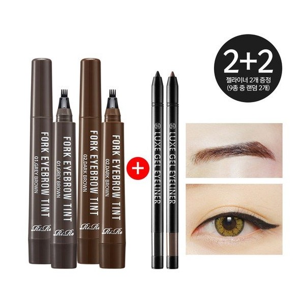 Lir 2+2 event/Lir Fork 2 tattoo eyebrows + 2 gel eyeliners, 02) Fork_2 dark brown + 2 pencils