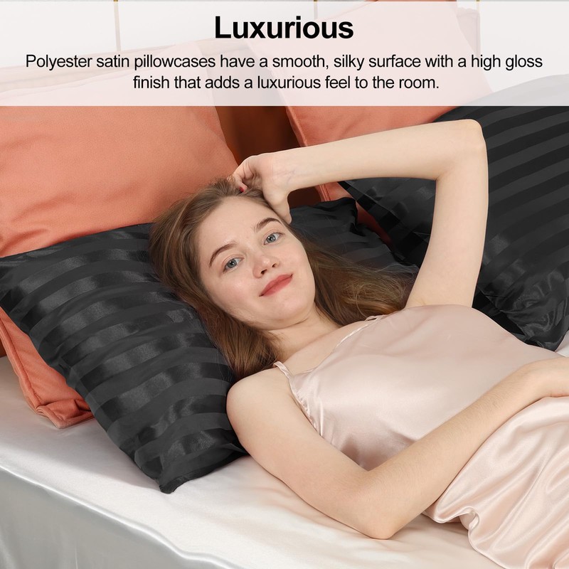 Lirex 2 Pack Satin Pillow Cases - Softer Than Silk Pillowcase for Hair & Skin, Standard Size with Zipper Closure, Cooling Pillow case with Black Stripes, 50 x 75 cm