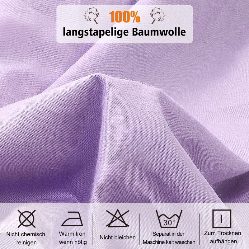 Lirex Fitted Sheet 140 x 200 cm 100% Cotton 300 Thread Count Soft Breathable Fitted Sheet, Light Purple