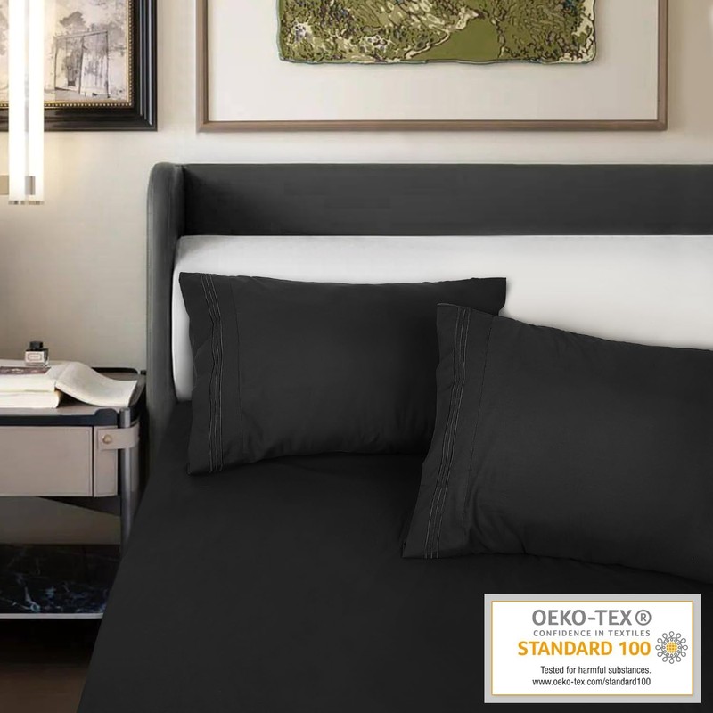 Lirex Pillow Cases (2 Pack), 1800 Thread Count Embroidered King Size Soft Brushed Microfiber Pillowcases, Machine Washable Wrinkle Free Breathable (Black, King)