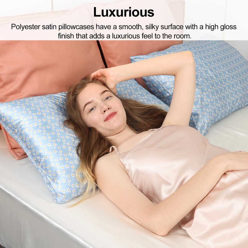 - Luxurious Satin Pillowcase: made from premium 100% polyester, this satin pillowcase offers a classic, shiny surface that is super smooth, soft, and comfortable, providing a luxurious silk-like feel for a restful sleep experience