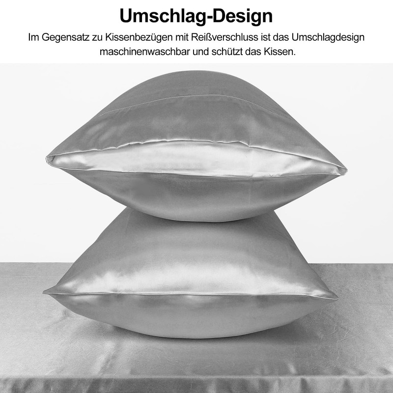Lirex Set of 2 satin cushion covers, 40 x 80 cm, cushion covers, soft as silk pillowcase, pillowcase 40 x 80 cm, cushion cover for hair and skin, Oeko-Tex certified, dark grey