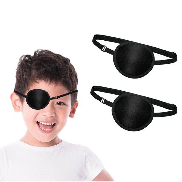 Liroyal 眼帯 シングルアイパッチ (2個入り) 片目眼帯 両目用 立体 調節可能 遮光 大人 子供 弱視 斜視 視力矯正 視力検査 (黒)
