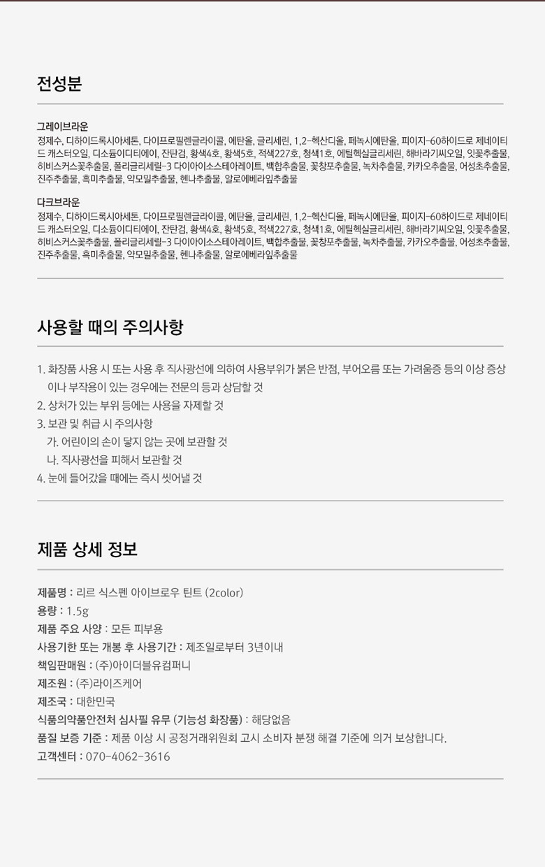 리르 식스펜 아이브로우 틴트 2color Lir Sixpen Eyebrow Tint 2color