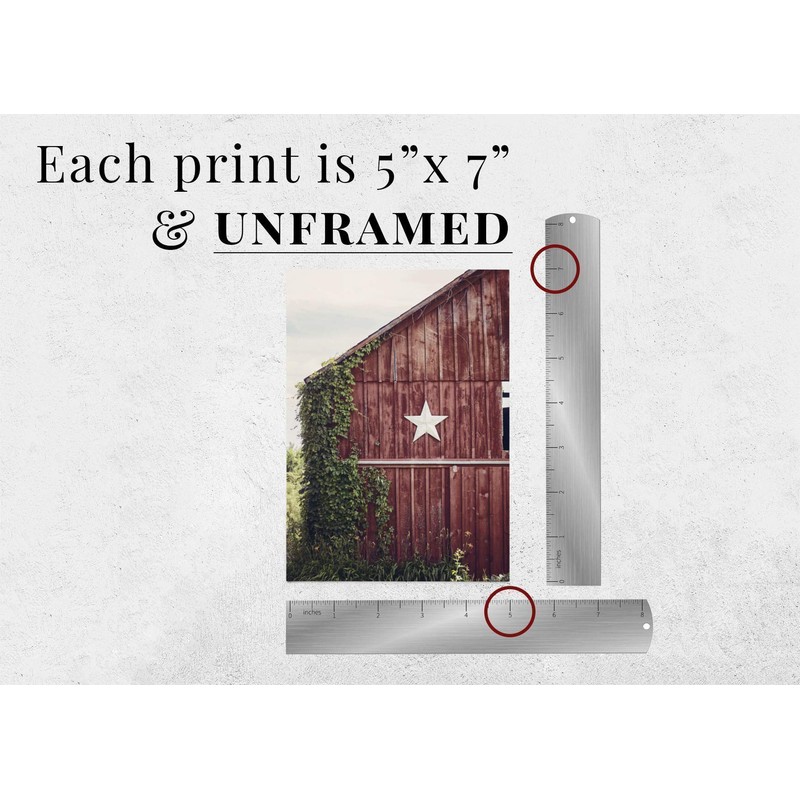 Lisa Russo Fine Art - Red Vertical Barn Landscape Prints for Farmhouse Wall Decor - Set of 4 - Not Framed (4 5x7 Prints)