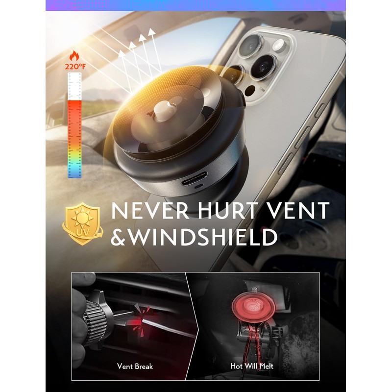 • [Irresistible magnetic force] Built with 24 high-performance N55 magnets, this magsafe suction phone mount delivers unparalleled magnetic strength to keep your device securely in place, even on the most bumpy terrains. This magnetic suction phone mount is fully compatible with iPhone 12-16 series.  - ,  -       .