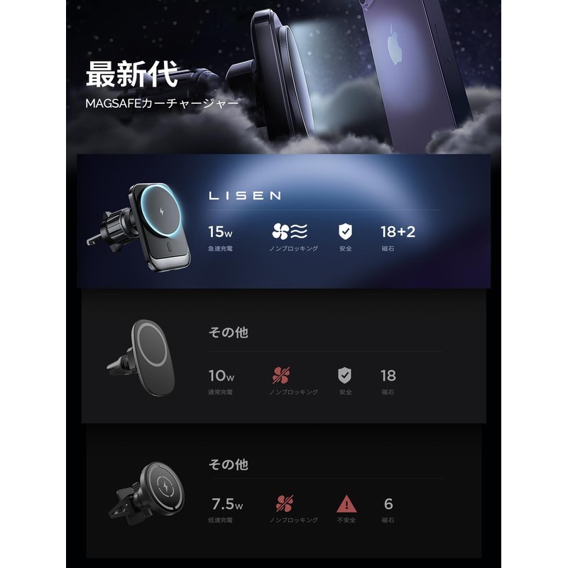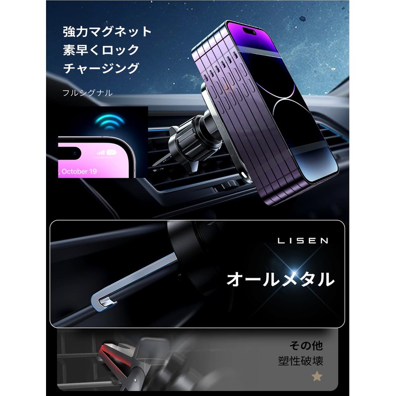 - One Click Release: One click for easy installation and removal. LISEN Car Smartphone Holder Wireless Rapid Charger is compatible with iPhone 14/12/13 series and other phones that support MagSafe charging, providing a one-stop solution for all your charging needs