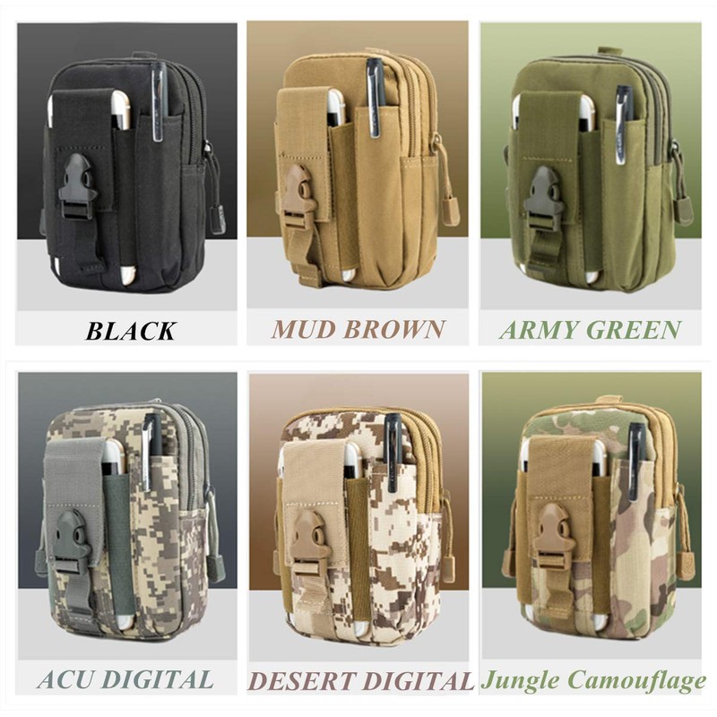 • This small Molle Pouch utility belt pouch is designed with external pockets which can fit a maximum of 6 inches smartphone screen, two zippered compartments, and expansion module style fastening straps which allow to be wear on a belt, vest or backpack