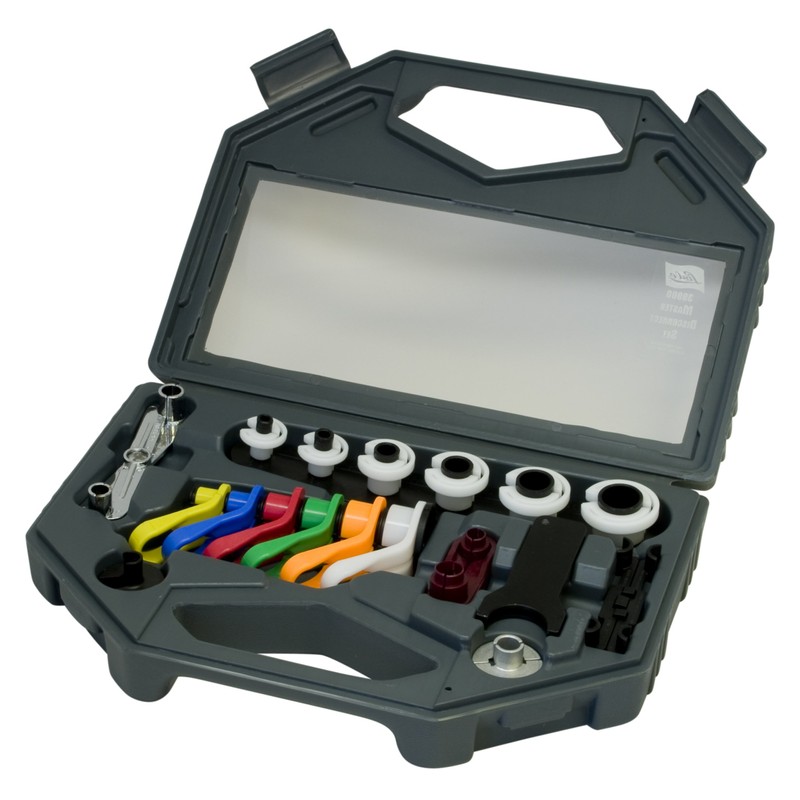 - Contiene 8 herramientas de desconexión populares para A/C y líneas de combustible