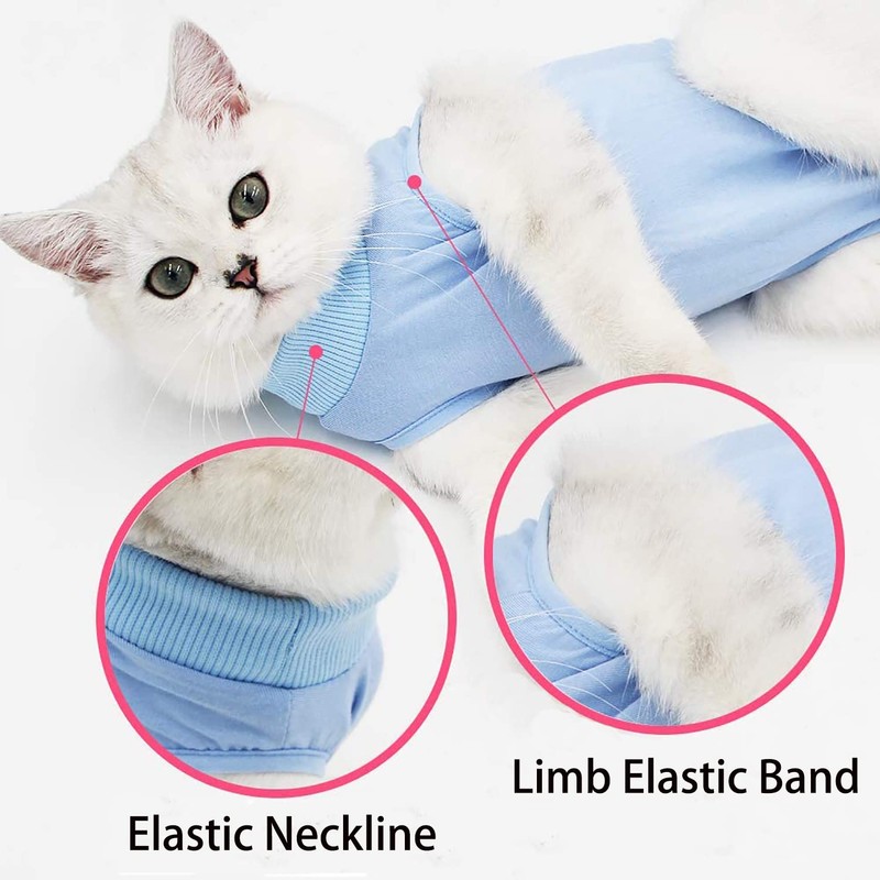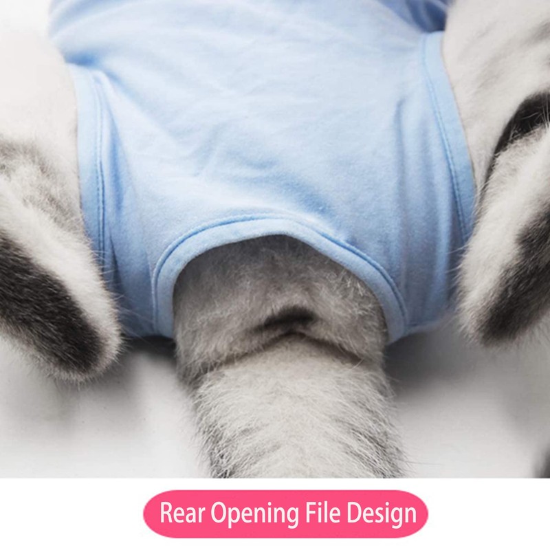 - 【Used For】-The suit is a professional alternative to a cone and full body bandage.It is very suitable for first aid purposes,wound and bandage protection and a lot more.Disinfection care, postoperative sputum prevention and keeping warm for your cats.Protects crotch and prevents harassment from other pets on physiological period.