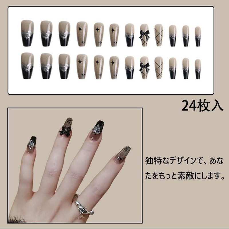 LISMYAKEY Nail Tip, Nail Seal, False Nail, 3D Nail Tip, Nail Art Patch, Nail Tip, Short, 24 Pieces, Handmade Nail Tip, False Nail, Wedding, Bride Nail, Japanese Style, Glossy False Nail (Black P-081,