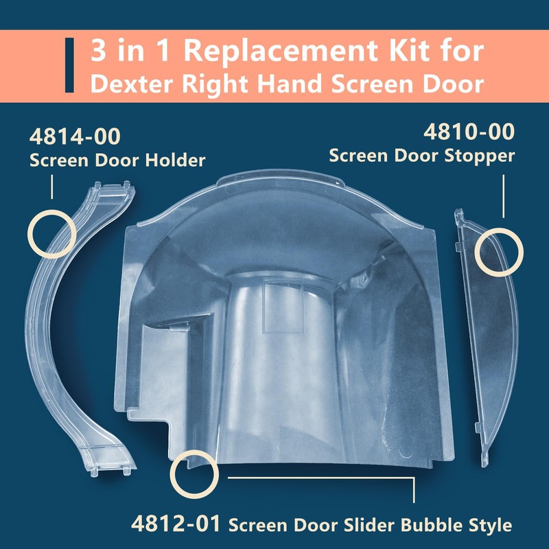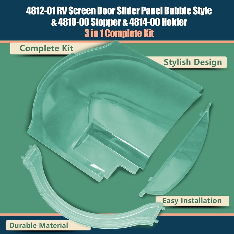 - 3 in 1 Complete Kit: The clear bubble style RV screen door slider kit includes the slider panel, stopper, and holder, providing all the necessary components for a complete replacement for Dexter right hand screen door.