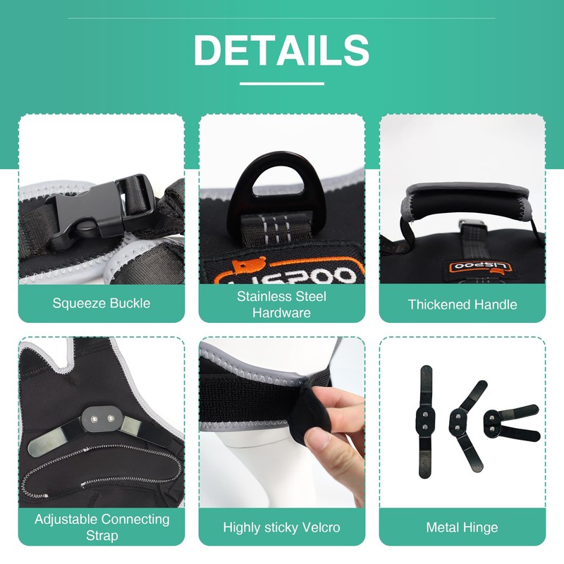 - KNEE SUPPORT TECHNOLOGY : Dog braces for back leg contains metal hinges to provide strong support. The hinges of knee brace for dogs are removable and can be adjusted to the line of the dog's legs when moving, providing stability while allowing flexibility during exercise