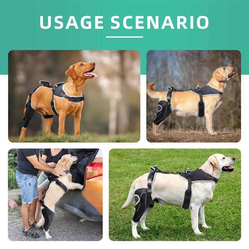 - EASY TO PUT ON AND CARRY : On the upgraded dog acl brace, the knee pads on the hind legs are partially attached by Velcro, making it easier to put on. Dog knee brace for hind leg is easy to take out and the carrying strap helps your dog to have a healthy and happy life by exercising outdoors. WARM TIPS:WE OFFER CUSTOMIZED SIZE PRODUCT IF YOU MET SIZE PROBLEM. DO NOT HESTITATE TO CONTACT US VIA EMAIL IN THE FIRST TIME
