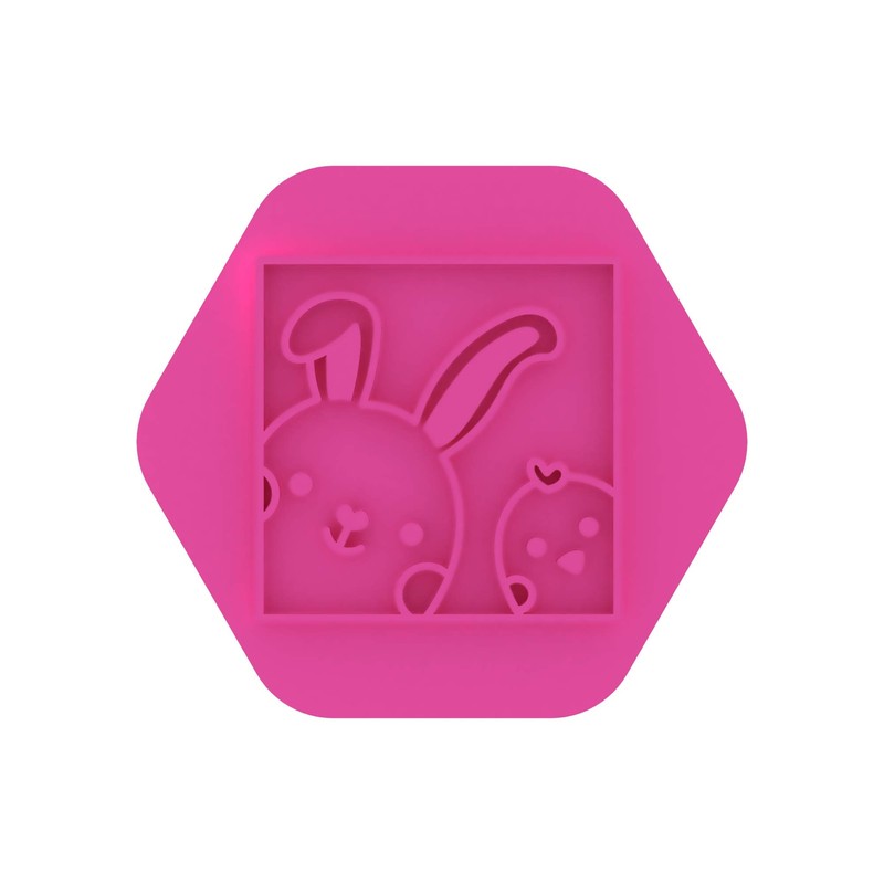 LissieLou Mini Easter Bunny and Chick in Frame Cookie Stamp Easter Icing Fondant Embosser - Light Pink
