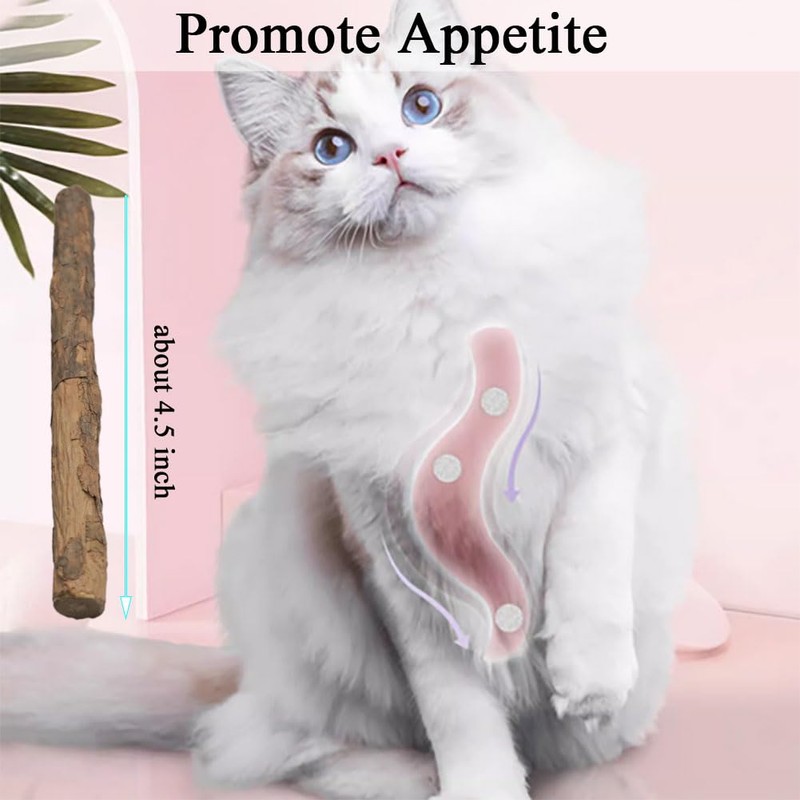 - Promote Health; silvervine sticks is helpful for teeth grinding; cat chew sticks can eliminate dental plaque and tartar for oral fresh breath; catnip sticks can also promote intestinal peristalsis to increase appetite effectively