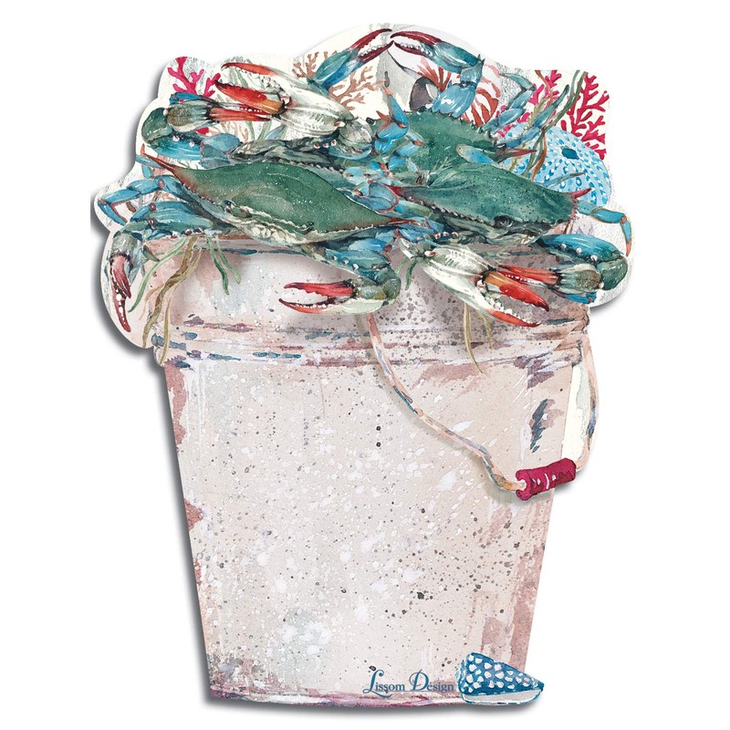 - BAYSIDE: Bucket shaped die-cut notepad echoes the artwork by Jason Li featuring a catch of blue crabs in a large metal bucket