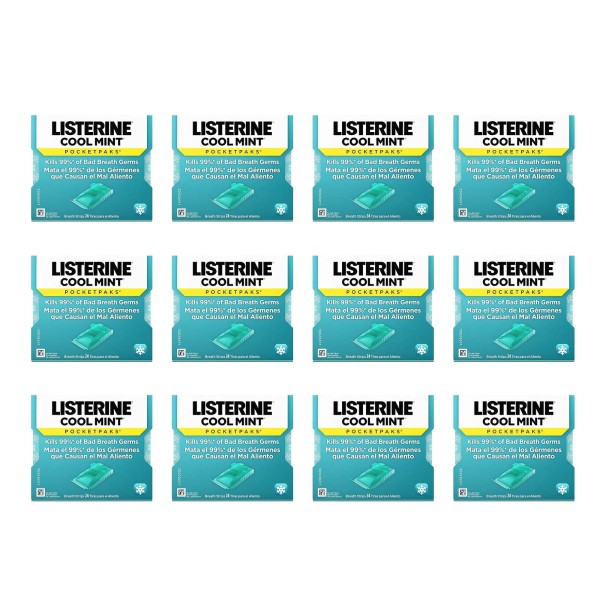 Listerine Cool Mint PocketPaks Fresh Breath Strips 24 Count Pack of 12