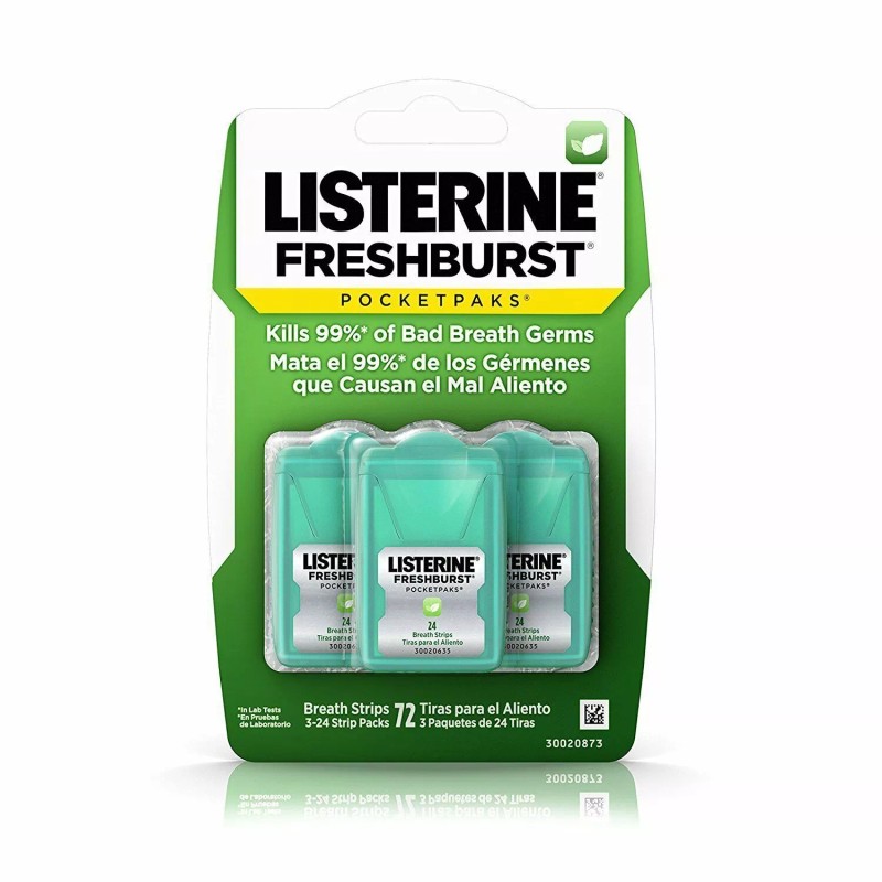Listerine PocketPaks Breath Strips Fresh Burst 3-24 Strip Packs 72 Strips Total