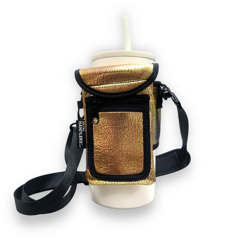 Lit Handlers Around Drink Wrap with Pocket Purse - Versatile Water Bottle Holder with Strap, Ideal for Gym, Travel, Running - 30-40oz Tumbler, Carrier Bag, Glimmering Gold