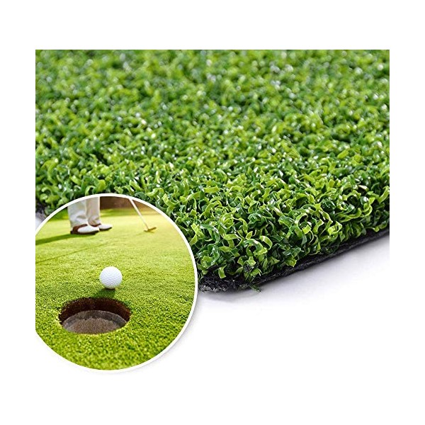 - PERFORMANCE :Grass height about 0.47" in length, 60 oz total weight per square yard. Thick high-density artificial grass for golf. Made of high quality synthetic material,superior resilience and durability,Constructed of the highest quality UV resistant polyethylene,ensure an extremely high-density artificial grass.Rubber backed with drainage hole, easy to clean and can be dry quickly.
