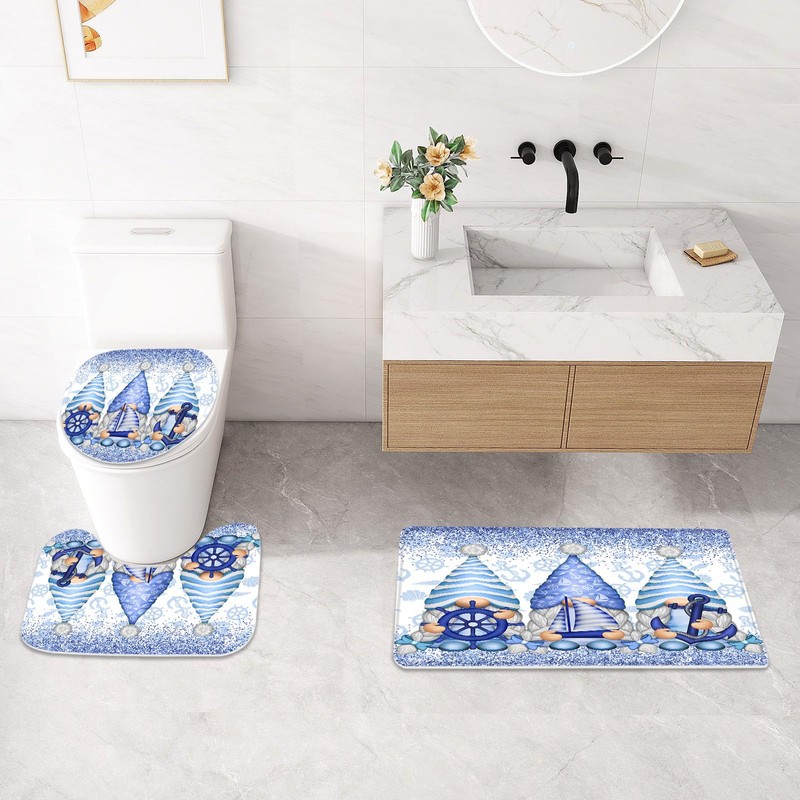 Litabel 4 Pcs Winter Gnomes Shower Curtain Set with Non-Slip Rugs, Toilet Lid Cover and Bath Mat, Nautical Marine Bathroom Decor Set with Shower Curtain and Rugs(Hooks Not Included)