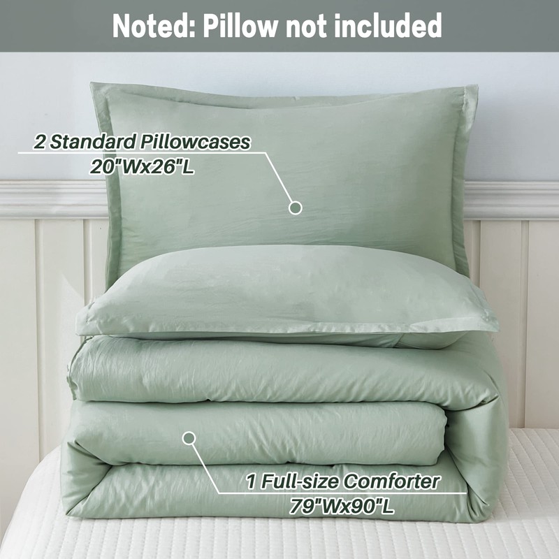 - What's included: Full comforter set includes 1 comforter (79x90 inches), 2 pillowcases (20x26 inches). Since the comforter comes in vacuum-sealed packaging, it is highly recommended to wash it and tumble dry low temperature to puff the comforter before first use. Or you can expose it to sunlight and tap gently, then it will re-fluffed nicely after hours.