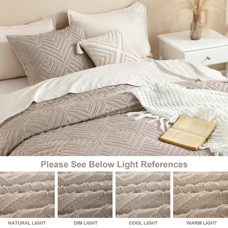 - 【Superior Fabric】Litanika light coffee comforter features a double-sided design. The front has tufting elements embroidered on it, while the back is made of soft, durable microfiber. This comforter envelops you in comfort, and its exceptional softness and breathability guarantee a peaceful sleep each and every night.