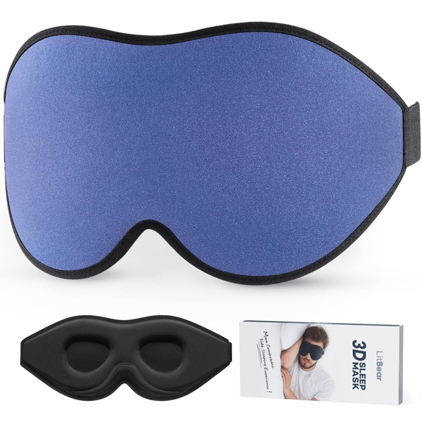 LitBear Sleep Masks, Light Blocking Eye Mask Sleeping for Women Men Side Sleeper, Soft 3D Comfortable Sleeping Mask with Adjustable Elastic Strap for Travel
