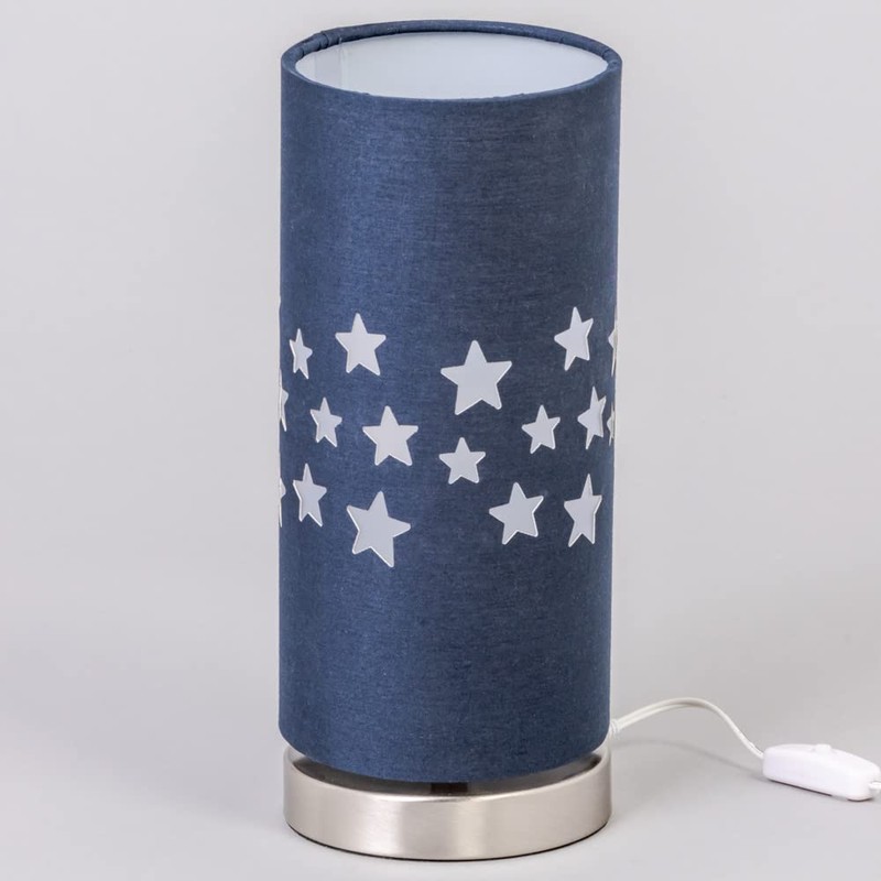 LITECRAFT Glow Stars Table Lamp with Blue Cylinder Shade - Satin Chrome